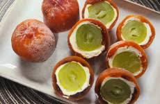 곶감을 하나씩 랩이나 키친타월로 감싸 주세요. 서로 붙는 것을 방지해요.