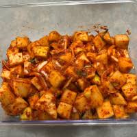 깍두기는 너무 작으면 금방 물러지고 너무 크면 양념이 잘 배지 않아요. 한 입에 먹기 좋은 크기로 깍둑썰기하는 것이 가장 좋아요.