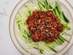볼에 양념 재료를 모두 넣고 잘 섞어 주세요. 새콤함은 식초로 조절하고 단맛은 설탕으로 맞추는 것이 좋아요. 양념은 미리 만들어야 맛이 안정돼요.