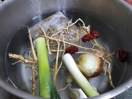 깊은 냄비에 물 2.5L 대파 흰부분 양파 마늘 생강 통후추를 넣고 강불에서 끓이다가 끓기 시작하면 중불로 줄여 10분만 미리 우립니다