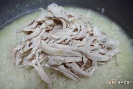 속 찹쌀과 함께 국물을 넉넉히 부어 내면 깔끔 담백한 백숙 한 상이 완성됩니다 기호에 따라 소금장이나 간장초장에 찍어 드세요