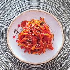 무에는 소화를 돕는 소화효소와 비타민 C가 풍부합니다. 식초의 산미가 입맛을 돋우고, 파의 알리신 성분이 풍미와 함께 건강감을 더합니다. 매운맛은 혈액순환을 돕는 데 보조적인 역할을 합니다.