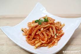 채는 너무 가늘면 물이 빨리 빠져 숨이 죽고, 너무 굵으면 양념 흡수가 느립니다. 젓가락으로 들었을 때 살짝 탄력이 느껴지는 2mm 두께가 가장 균형이 좋습니다.