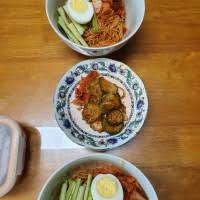 김치, 군만두, 삶은 달걀, 오이무침과 함께 먹으면 한 끼로 든든해요. 특히 냉면 육수나 동치미 국물을 곁들이면 시원함이 배가됩니다.