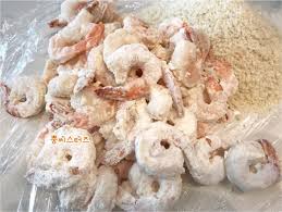 1) 새우 표면에 튀김가루 먼저 묻히기