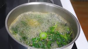 쑥은 마지막에 넣어주세요. 너무 오래 끓이면 향이 날아갈 수 있습니다. 짧게 끓이는 것이 중요합니다 😊