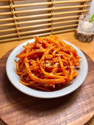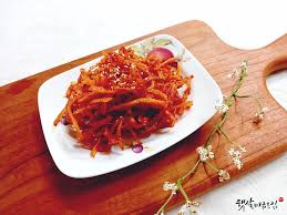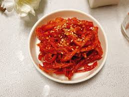 진미채는 단백질과 타우린이 풍부해 피로 회복에 도움을 줍니다. 마늘과 고추장의 알리신이 더해져 체력 보강에도 좋습니다.