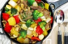 같은 팬에 마늘과 채소를 볶아 주세요. 채소는 아삭함이 남아 있어야 고기와 식감 조화가 좋아요.